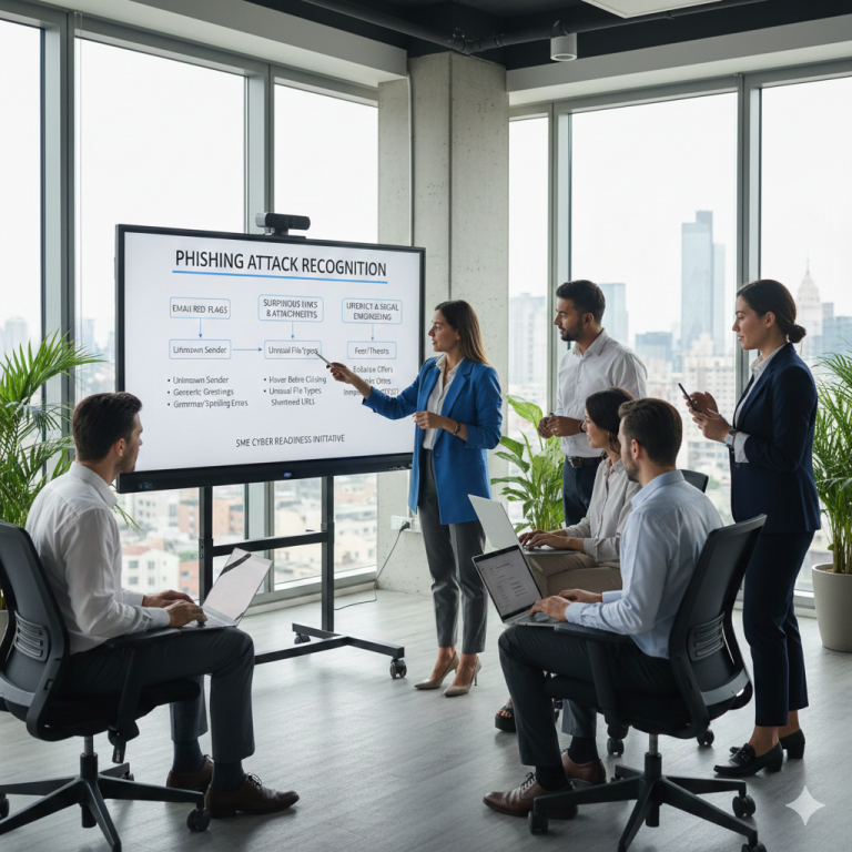 👉 Pro Tip: Consider simulated phishing tests or awareness workshops to train your “human firewall.” Even small improvements in awareness drastically reduce risk.